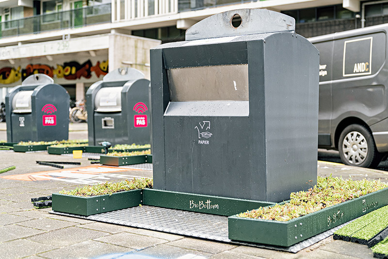 De eerste Bio Bottoms met sedumplantjes staan rondom de containers op het Gelderseplein. Het gaat om een pilot project. Mocht het effect hebben op de hoeveelheid afval dat naast de ondergrondse containers wordt gegooid dan zullen ze mogelijk op meerdere plekken in Malburgen geplaatst worden. In de wijk Presikhaaf loopt een vergelijkbaar project met lage heggen rondom de containers.