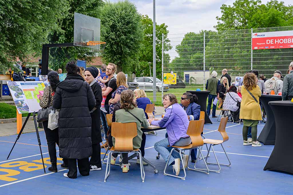 Discussietafels tijdens de eerste bijeenkomst op 13 juni 2024 in buurtcentrum De Hobbit – fotografie Michel Lammerse