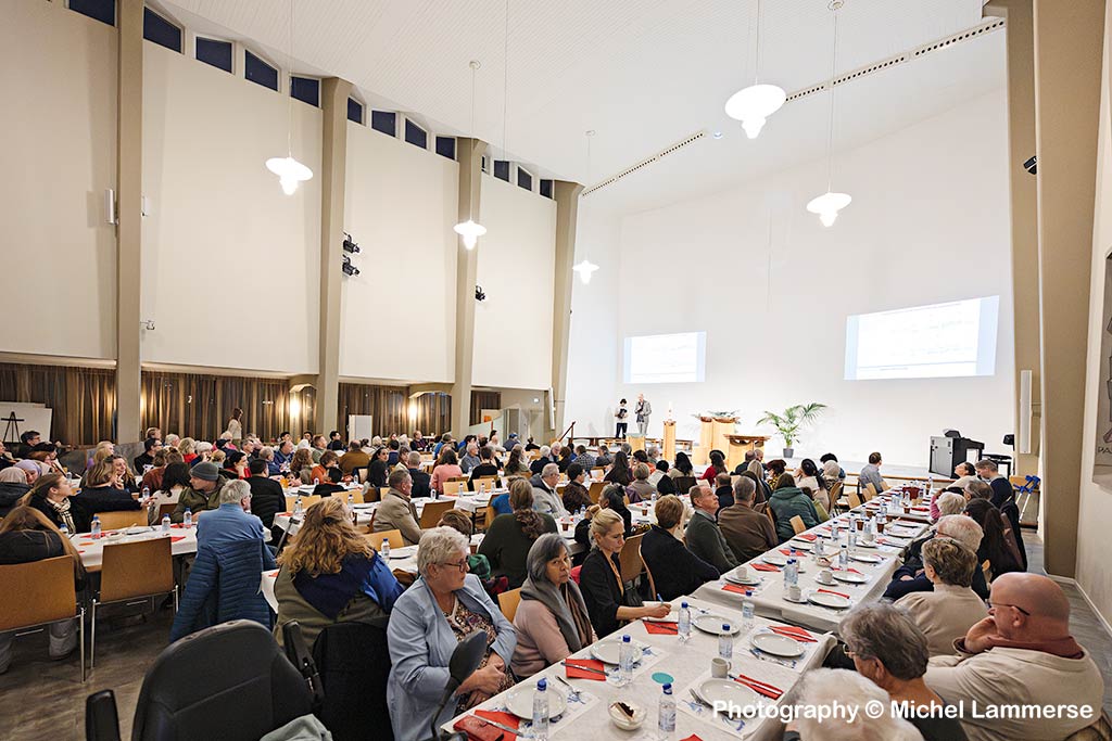 Eten verbindt, en net als bij de eerdere bijeenkomsten werden alle deelnemers getrakteerd op een uitgebreid multicultureel menu, inclusief een toetje verzorgd door het sociaal cateringbedrijf Vitanos. Het eten werd gezamenlijk genuttigd aan lange, gezellige tafels in de hoofdzaal van de Kruiskerk.
