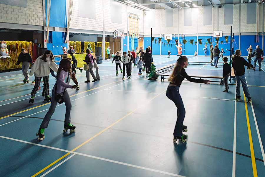 Het populairste onderdeel was ook dit jaar de rollerdisco. De sportzaal van De Malburcht was omgetoverd tot een discoruimte in kerstsfeer met DJ, kerstversiering en feestverlichting. Tussen 14:00 en 17:00 uur maakten honderden kinderen en ook veel ouders talloze rondjes op rolschaatsen. Wie trek kreeg van al dat rolschaatsen, kon buiten terecht voor verse oliebollen, warme chocolademelk, soep, een gezond mandarijntje of een zelfgebakken broodje . Voor de volwassenen was er glühwein.