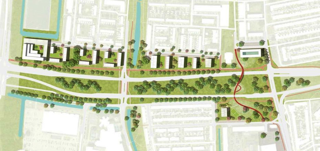 Om de beide wijkdelen dichter bij elkaar te brengen is er in de tweede fase van het plan opgenomen om de rijbanen aan de oostzijde te verplaatsen naar de westzijde. Hierdoor is er meer ruimte voor extra groen en bebouwing..