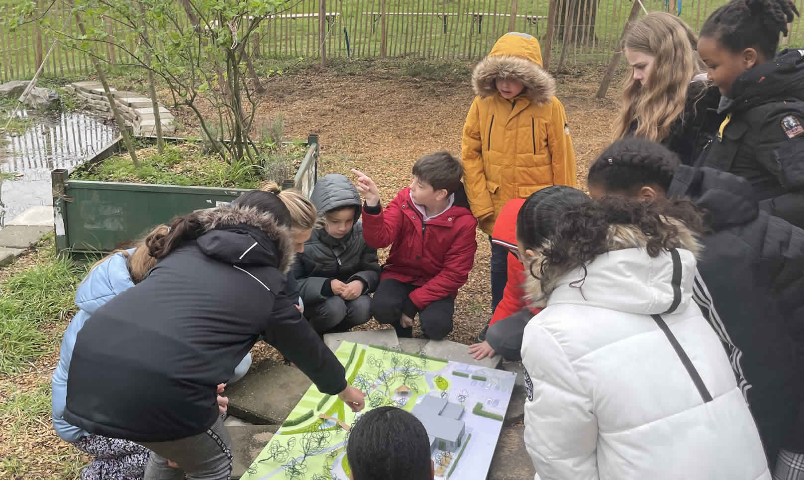 In de maanden april en mei gaan groep 6,7 en 8 meedenken over de bouw van ‘het paviljoen van de toekomst’. Het moet een opvallend bouwwerk worden dat symbool staat voor kansrijk opgroeien van de jeugd in de wijk. In de ochtend gaat het dienen voor buitenonderwijs, in de middag voor uitdagende tieneractiviteiten, in de avond voor ontspanning. Bij het ontwerp en de bouw komen al die drie functies ook aan bod. De komende weken leren de kinderen alles over ‘het verhaal’ achter de bouwmaterialen: steen, metaal, hout en plastic. Daarna maken ze daar zelf sierbakken van voor op het schoolplein en in de tuin. Tot slot zorgen ze voor een feestelijke presentatie met een lentefeest op 13 mei. Op deze manier leren ze op een avontuurlijke manier over het verleden en de toekomst van hun eigen leefomgeving en geven daar vervolgens ook zelf actief mee vorm aan.