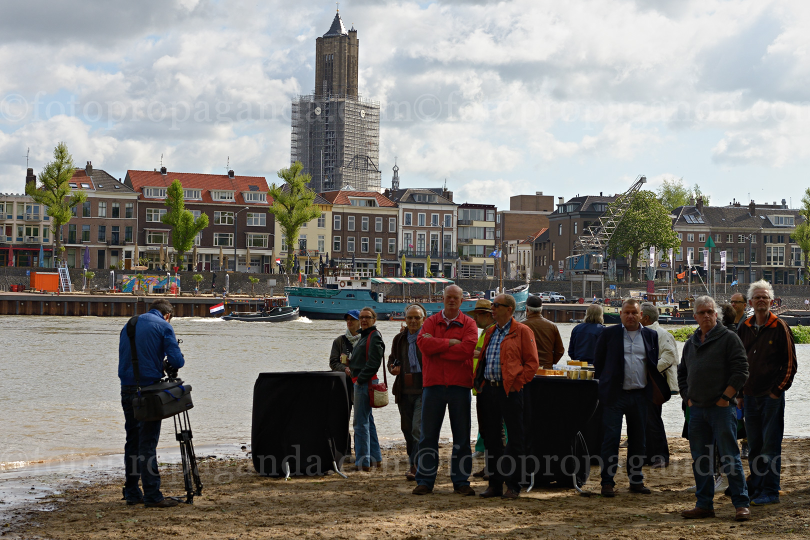 Ruim 50 belangstellenden waaronder vrijwilligers, sponsoren, afgevaardigden vanuit gemeente en pers waren aanwezig bij de feestelijke ingebruikname van het pontje tussen de Stadsblokken en het centrum van Arnhem.
