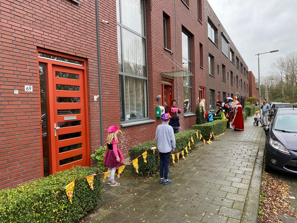 Alles was corona proof geregeld, ouders moesten binnenblijven zodat Sinterklaas en zijn roetveegpieten geen risico liepen bij het bezoek aan de kinderen. Kinderen konden Sint en zijn pieten buiten in de straat ontmoeten en kregen wat lekkers..
