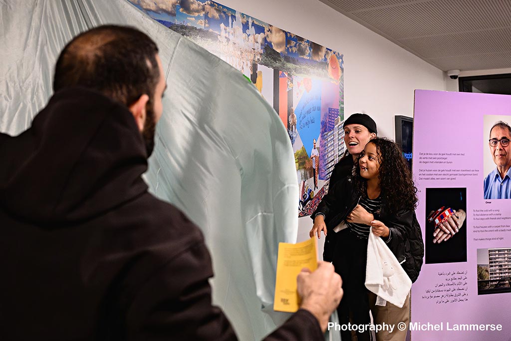 Immerloo – Het kleinste en meest kleurrijke wijkdeel van de wijk Malburgen, Immerloo en Het Duifje, stond vrijdagmiddag 1 november in het teken van de feestelijke afsluiting van een uniek kunstproject. Vier kunstwerken, gemaakt door kunstenaar Negin Zendegani en dichter Bakr al Jabr, werden onthuld. Dit project, dat het afgelopen jaar plaatsvond, werd uitgevoerd in samenwerking met bewoners van Immerloo en onder leiding van Bureau Ruimtekoers.