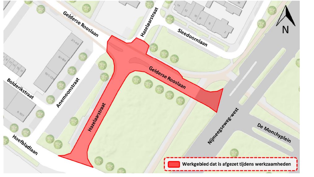 Een deel van de Gelderse Rooslaan wordt vanaf donderdag 31 oktober tot en met vrijdag 8 november volledig  afgesloten. Het gaat om het eerste stuk van de Gelderse Rooslaan. Hierdoor is de kruising met de Hazelaarstraat niet bereikbaar en is het ook niet mogelijk om via de Nijmeegseweg de Gelderse Rooslaan in te slaan. Bewoners in een deel van West zijn middels een brief op de hoogte gesteld.