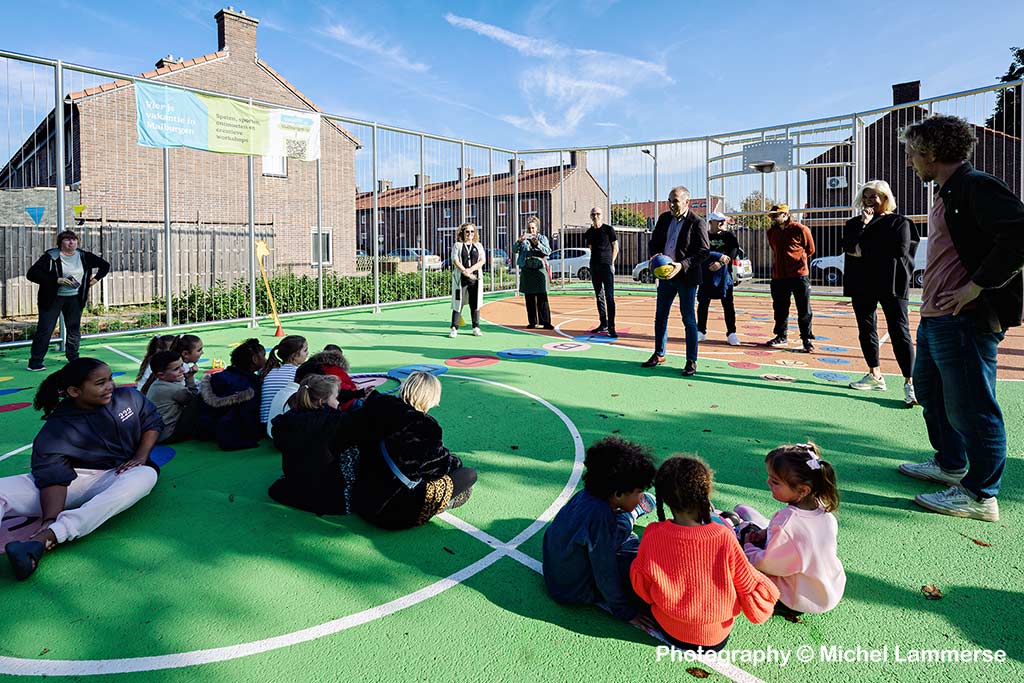 Wethouder Bob Roelofs merkte op dat er nog netten in de basketbalringen moeten worden geplaatst om het speelterein helemaal af te maken. “Dat wordt nog geregeld,” verzekerden vertegenwoordigers van de gemeente.
