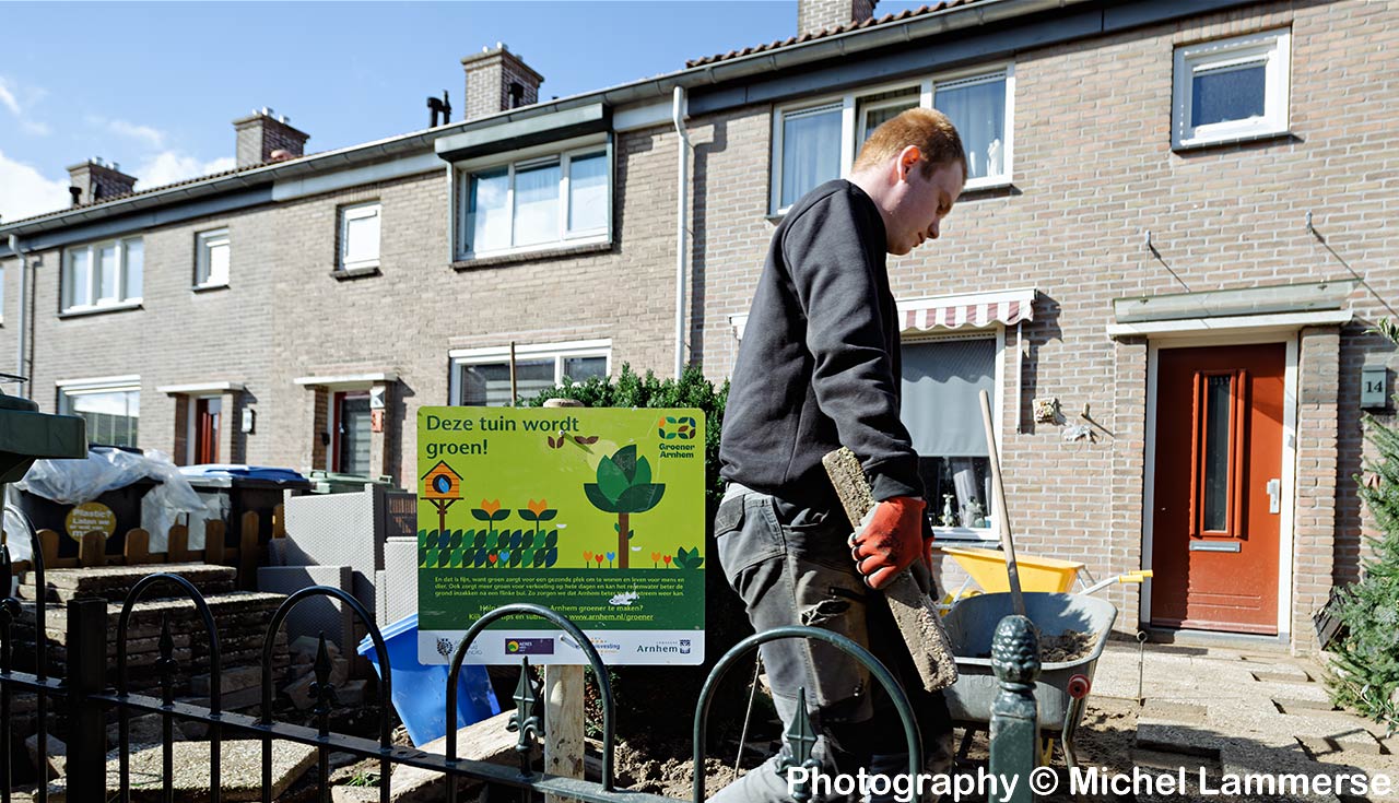 Elk jaar komen drie tuinen van huurders van Volkshuisvesting in Malburgen-Oost hiervoor gratis aan de beurt. Dit is het eerste jaar van deze groene actie. De tuinen zijn te herkennen aan een informatiebordje in de tuin waarop staat ‘Deze tuin wordt groen!’. Wil jij kans maken om volgend jaar mee te doen? Je kunt je aanmelden via groener@arnhem.nl. Of doe mee aan de Tegelophaalservice. Daarmee worden ook dit jaar jouw tuintegels weer gratis opgehaald. Zodat je makkelijk aan de slag kunt met het groener maken van jouw tuin. Aanmelden kan via info@arnhemklimaatbestendig.nl. Op www.tegelophaalservice.nl staan (binnenkort) de dagen waarop de Tegelophaalservice rijdt.